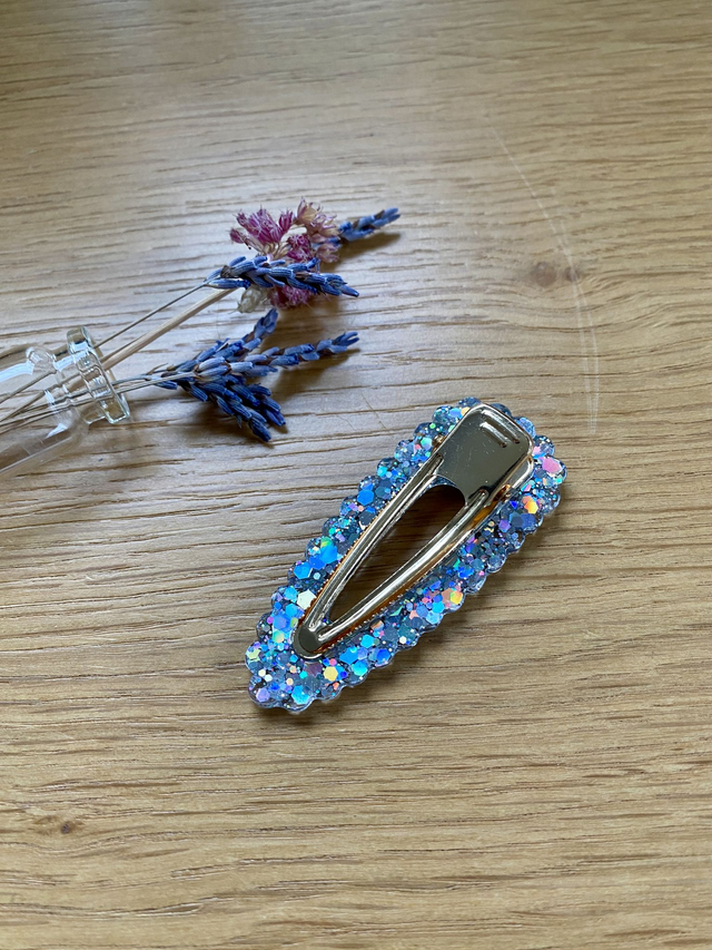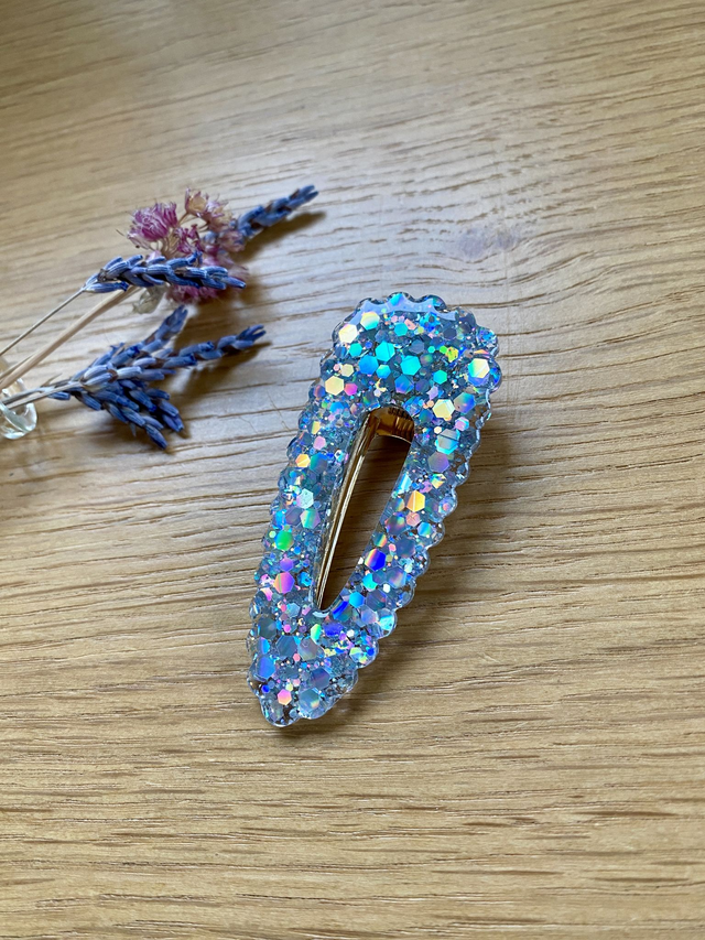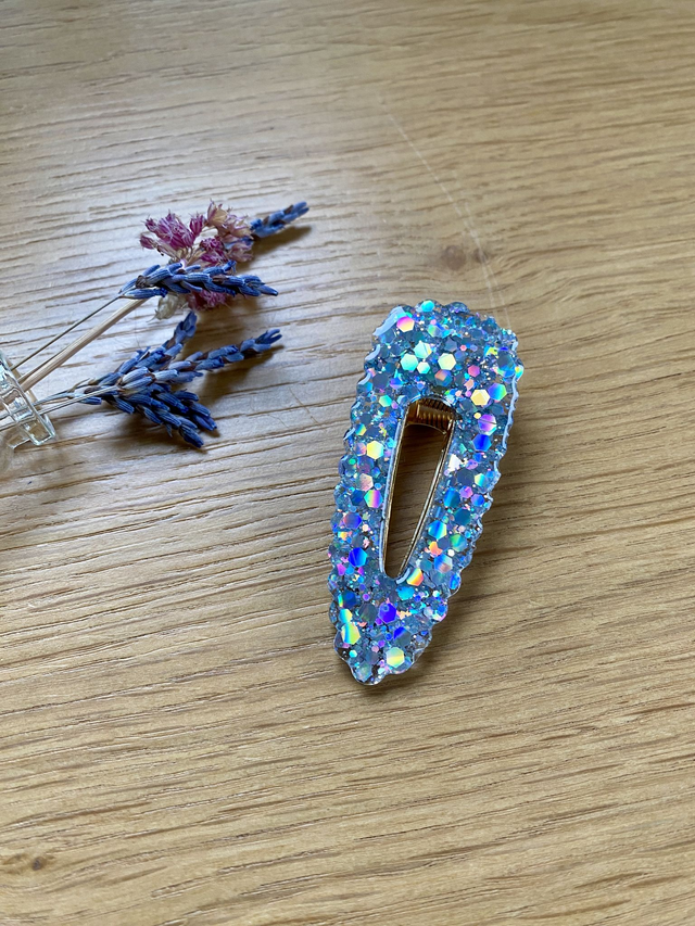 Barrette modèle Theresia gaufré, incrustée de paillettes chunky argent.