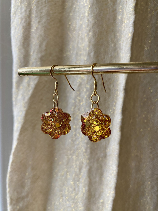 Boucles d'oreilles en argent 925 doré à l'or fin, paillettes chunky or.