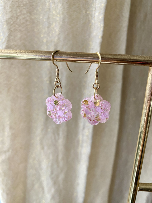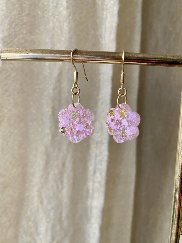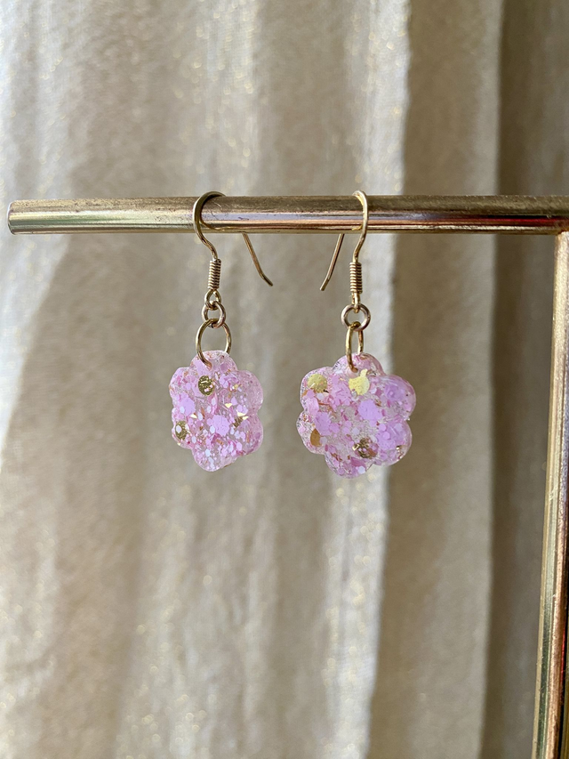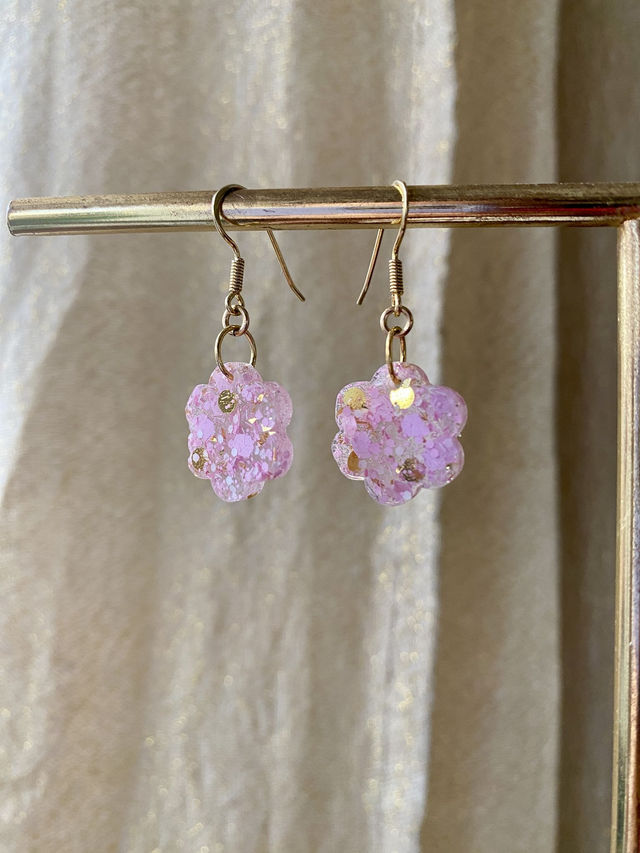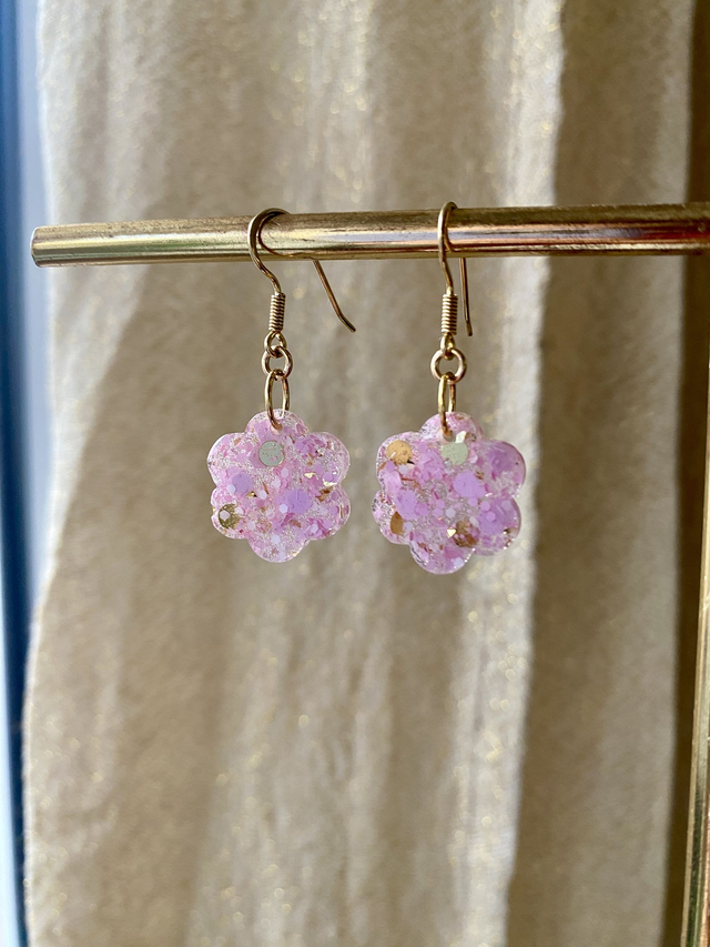 Boucles d'oreilles en argent 925 doré à l'or fin, paillettes lilas.