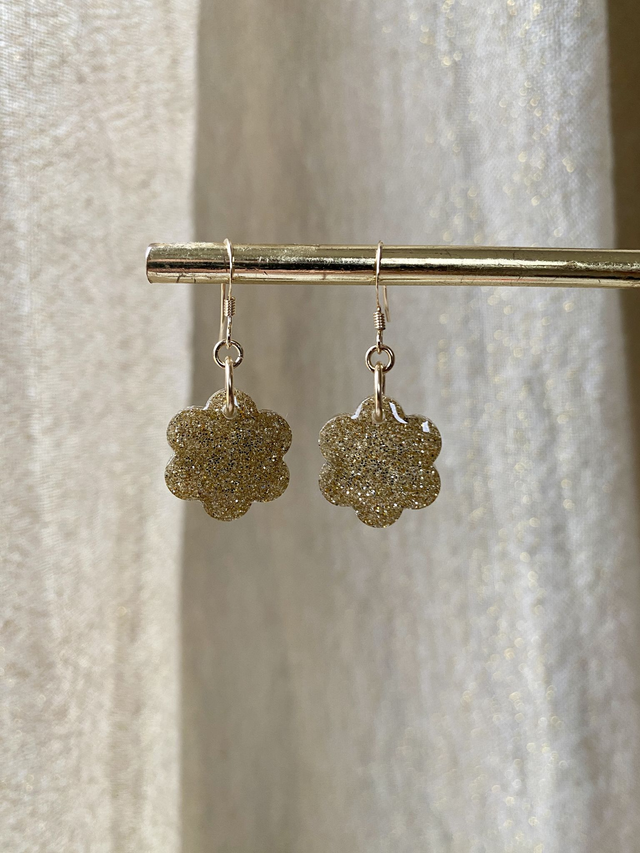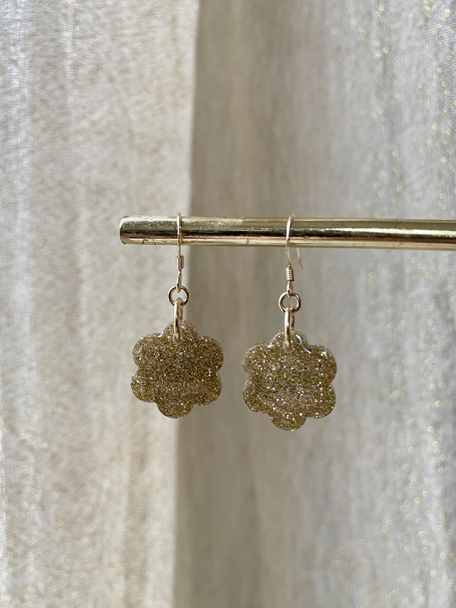 Boucles d'oreilles en gold filled (or laminé), paillettes fines dorées.