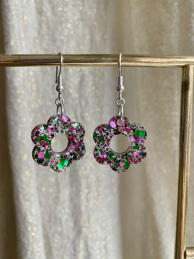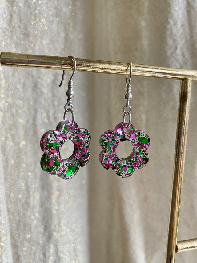 Dimensions: environ 5 cm de longueur avec les crochets ; environ 2,5 cm de diamètre pour la fleur.