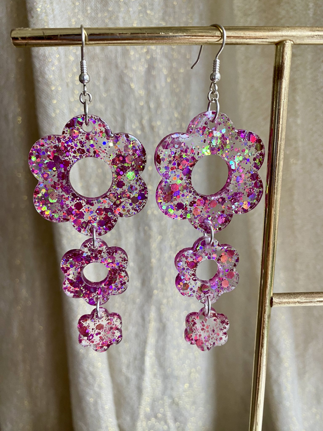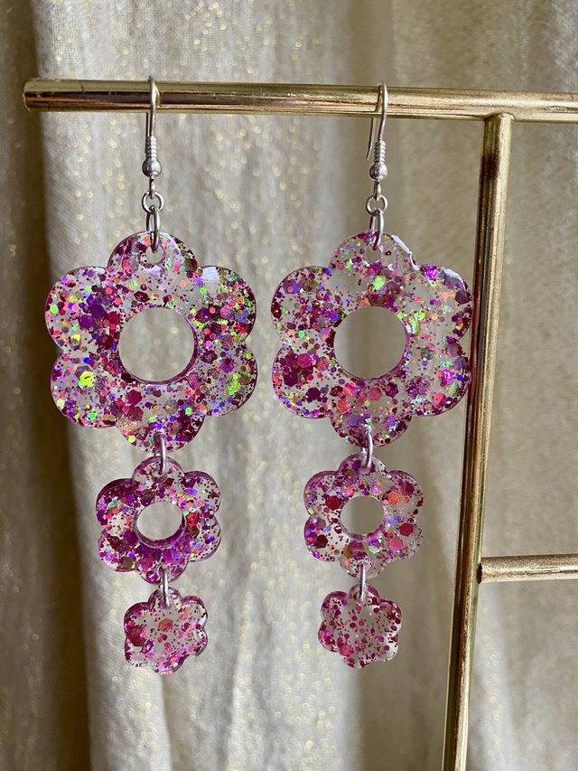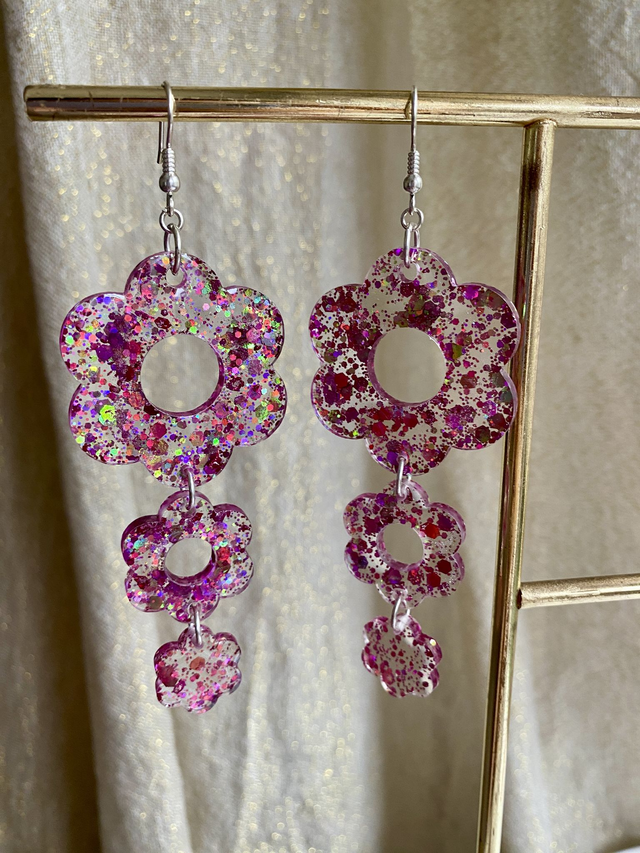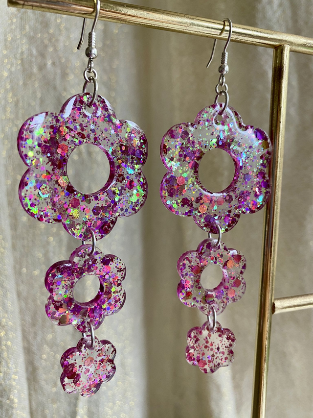 Dimensions: environ 10,5 cm de longueur avec les crochets ; environ 4 cm de diamètre pour la plus grande fleur.