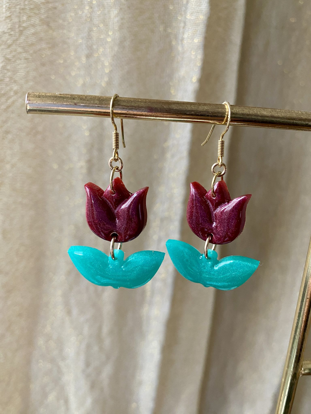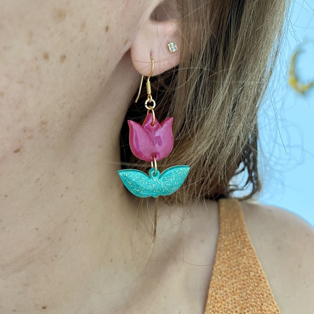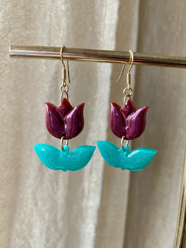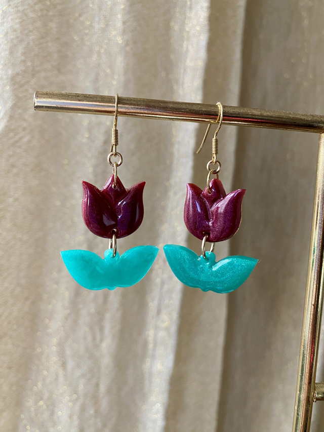 Dimensions: environ 5 cm de longueur avec les crochets ; environ 3 cm la tulipe.