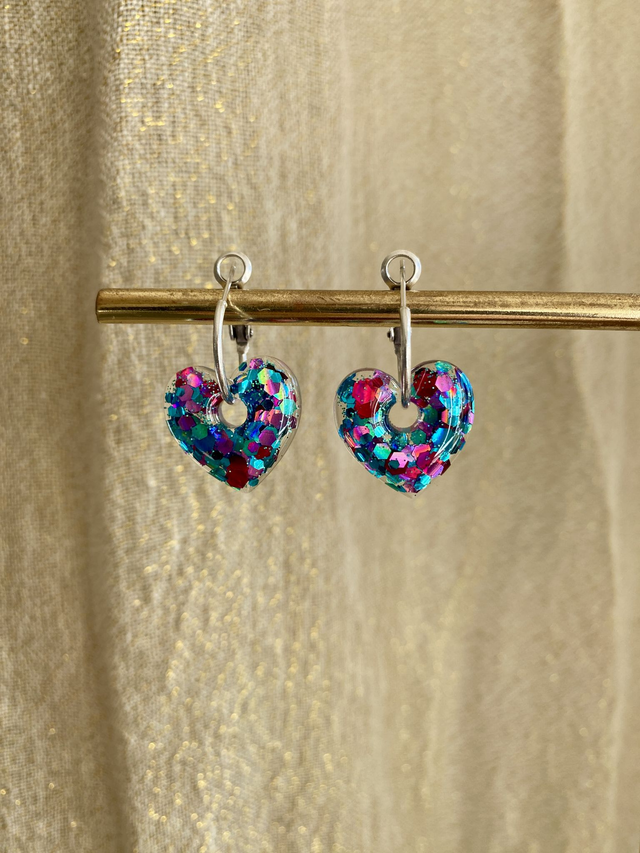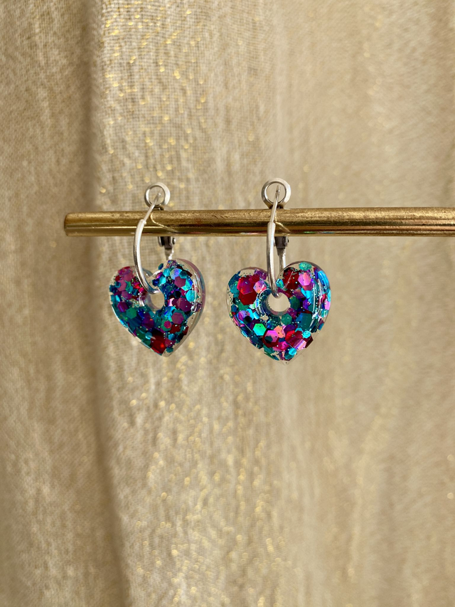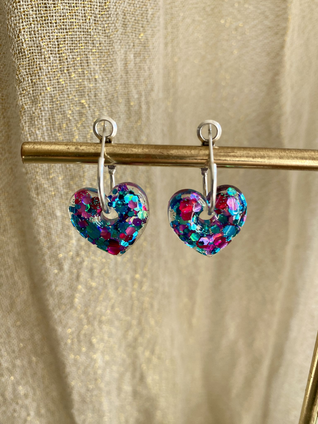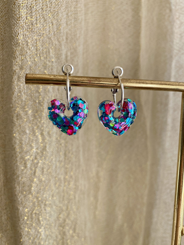 Dimensions: environ 3 cm de longueur avec les créoles ; environ 2 cm de diamètre le coeur.