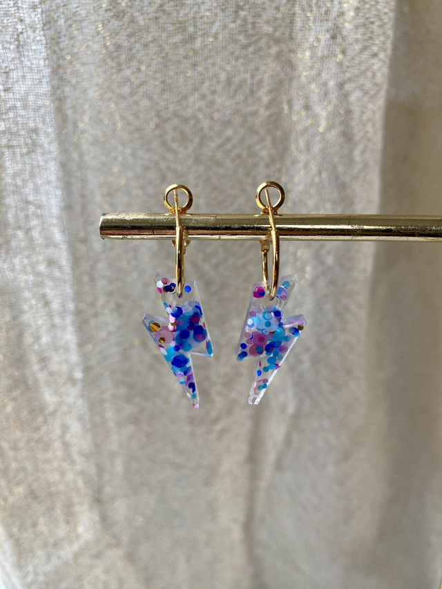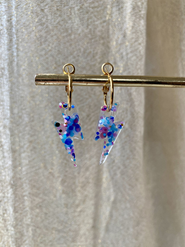 Dimensions: environ 4,5 cm de longueur avec les créoles ; environ 3 x 1,5 cm l'éclair.
