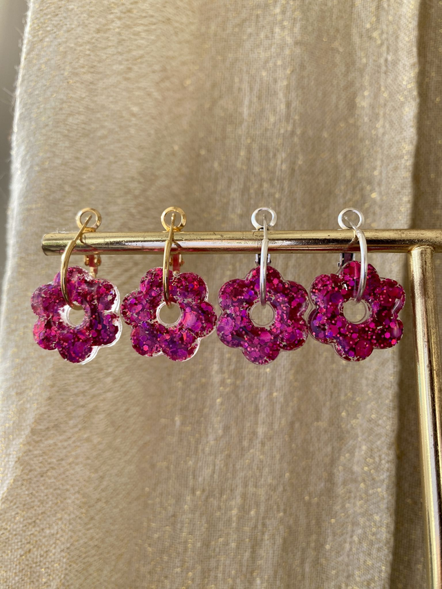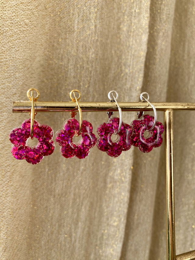 Créoles fleurs 2.0 - magenta