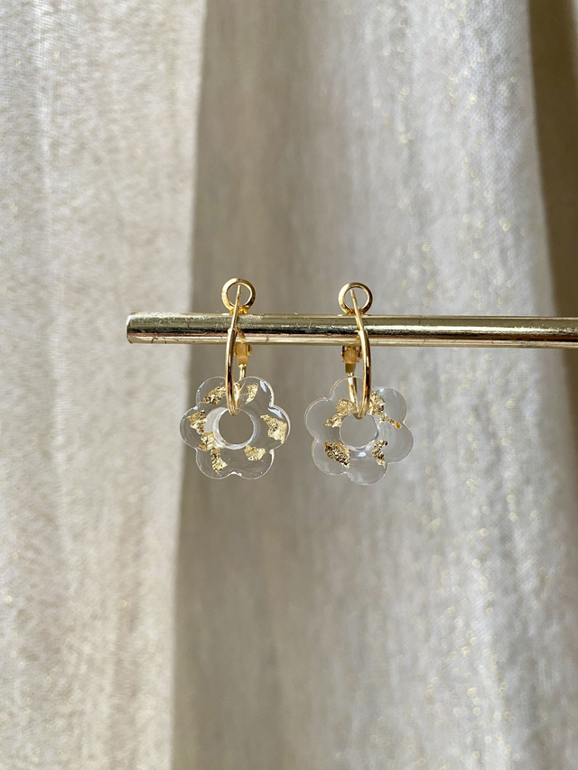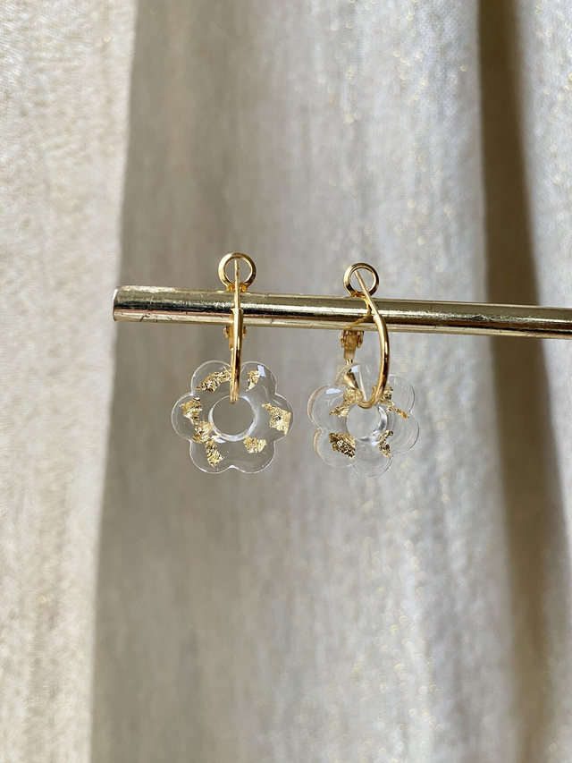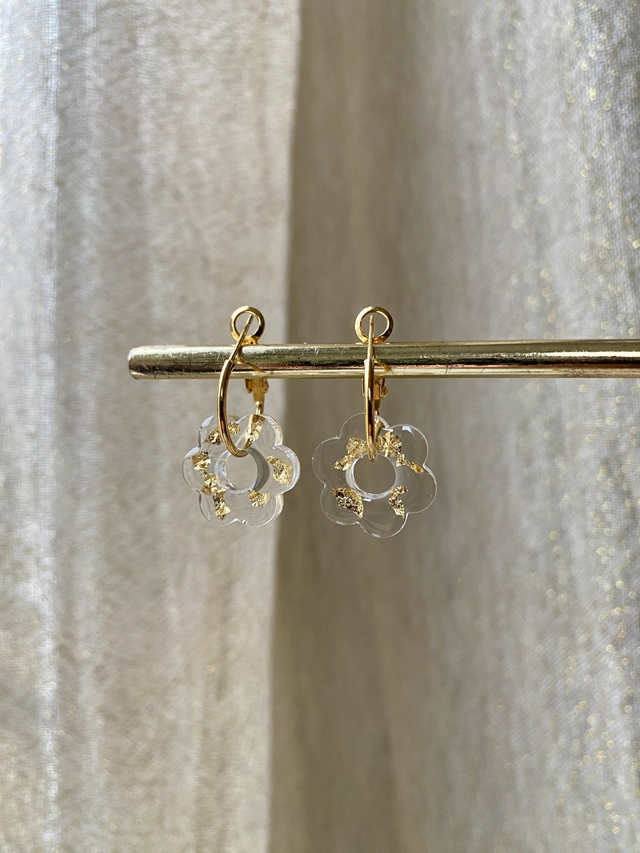 Créoles fleurs - flocons dorés