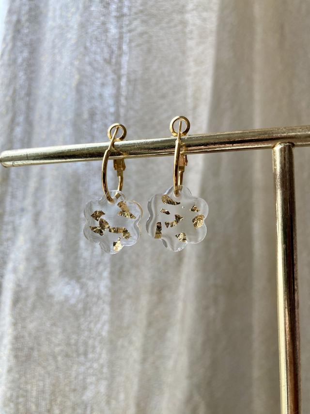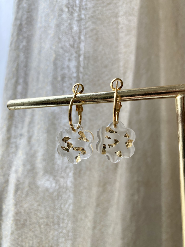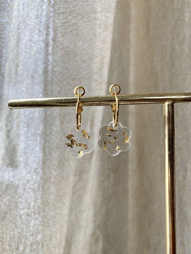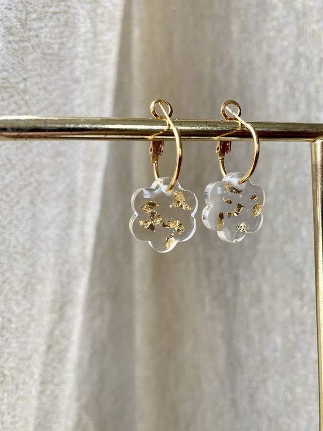 Dimensions: environ 3 cm de longueur avec les créoles ; environ 1,5 cm de diamètre la fleur.