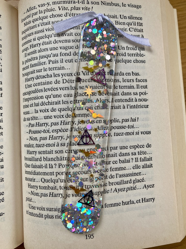 Marque page magique, inspiré du célèbre sorcier, motifs reliques et vif d'or.