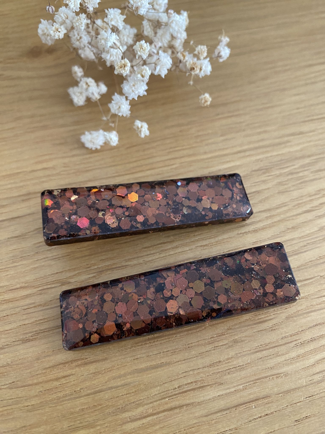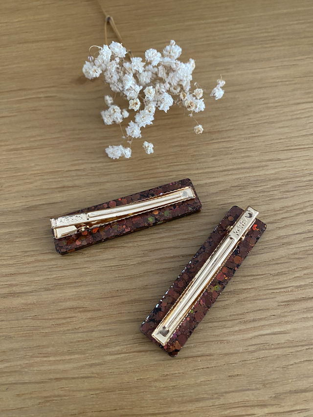 Barrette modèle Clémence, paillettes "terre".